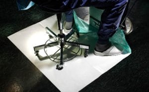 Superabsorbent mat for use on floors in operating theatres, examination...